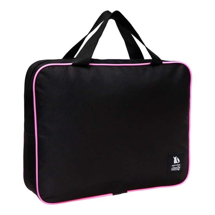 Папка для труда А4 на молнии текстиль 70мм 350 х 270 , черный/розовый «1 сентября»