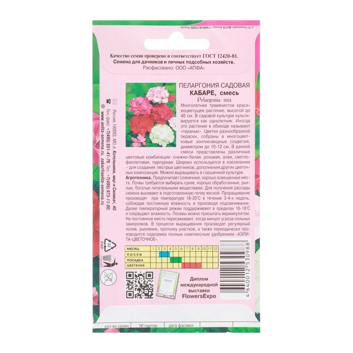 Семена цветов Пеларгония "Кабаре садовая", 0,025 г