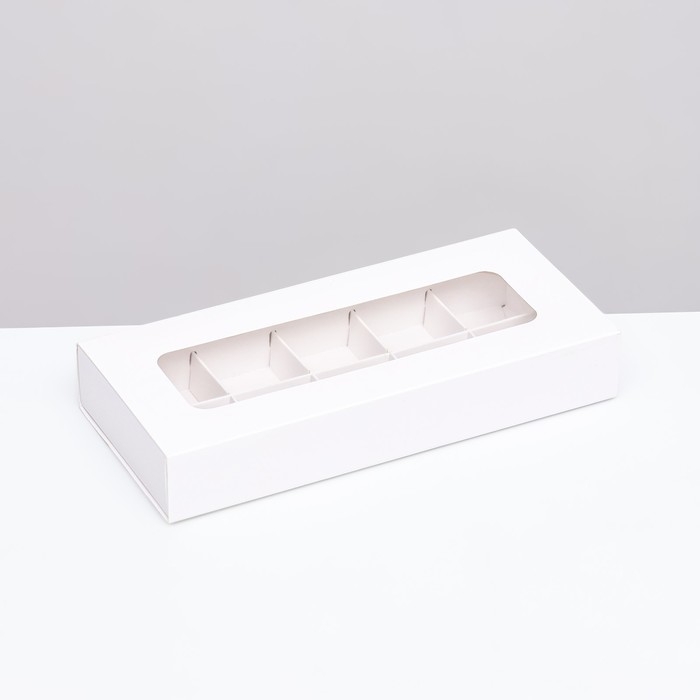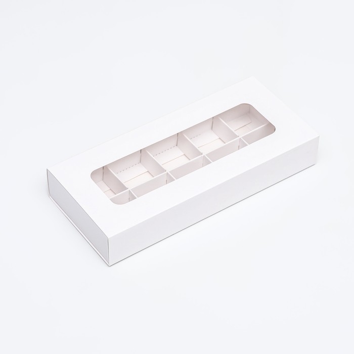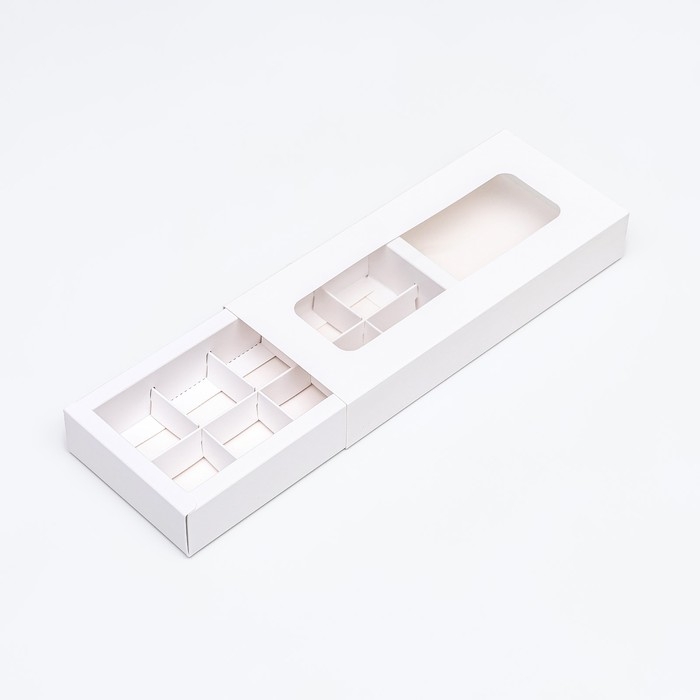 Коробка под 8 конфет + шоколад, с окном, белая, 17 х 5 х 17,5 х 3,7 см