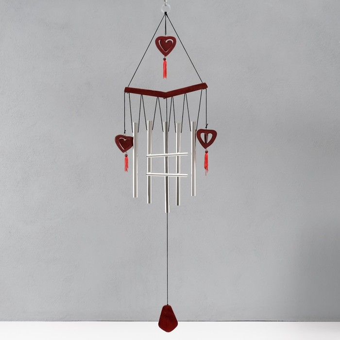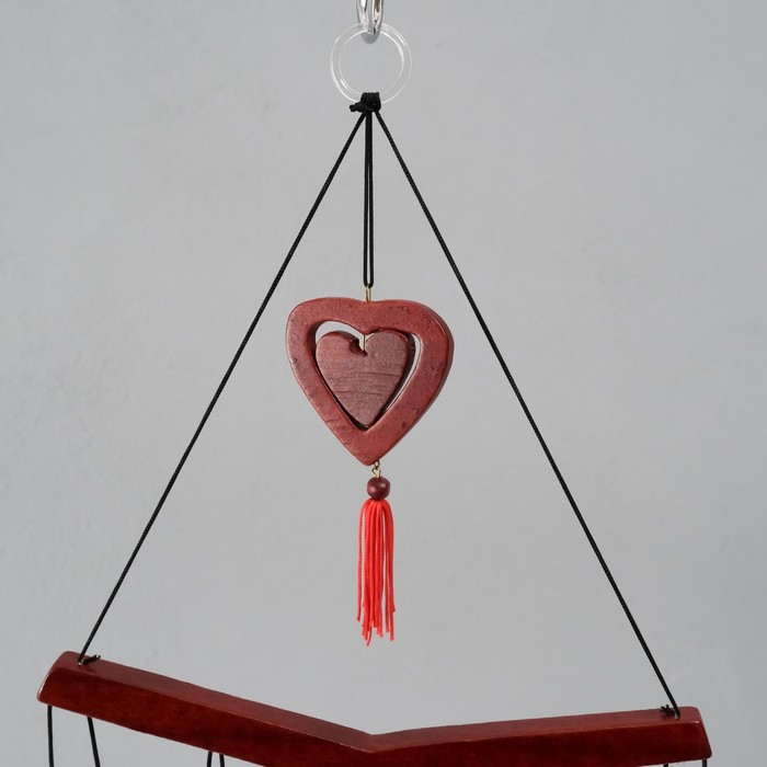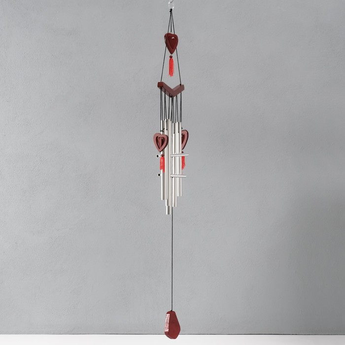 Музыка ветра металл, дерево "Двойное сердце" 7 трубок 72х19 см