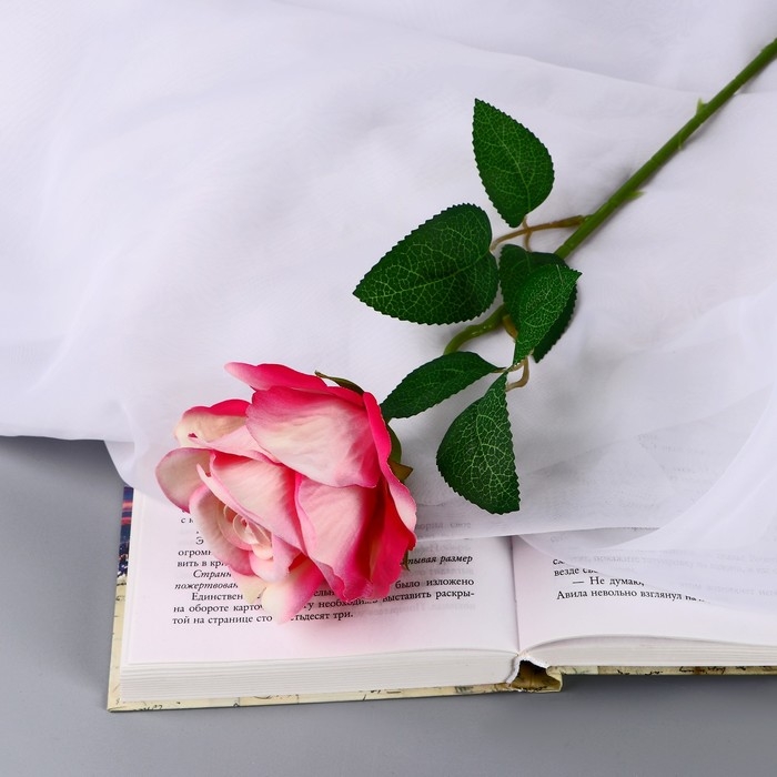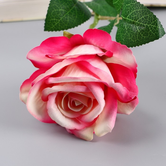 Цветы искусственные "Роза чайная экстра" d-7 см 44 см, бело-малиновый