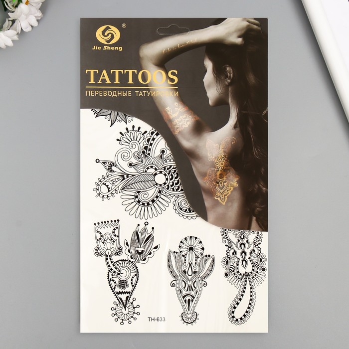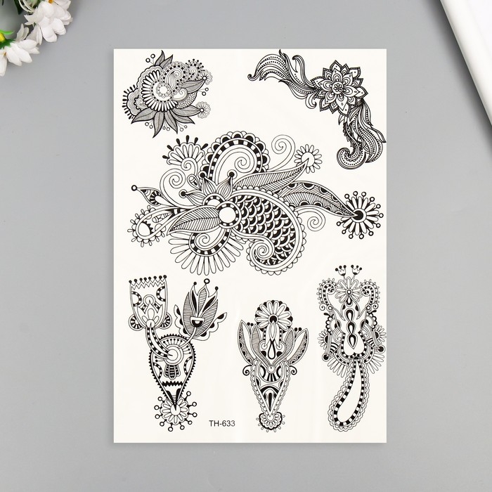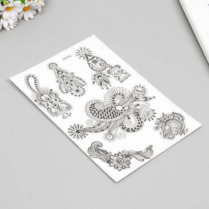 Татуировка на тело чёрная "Растительные узоры" 25х15 см