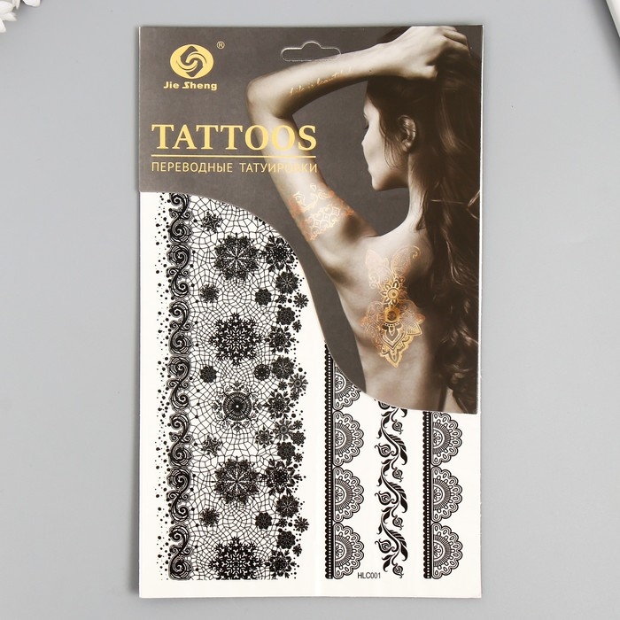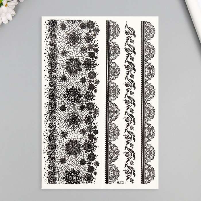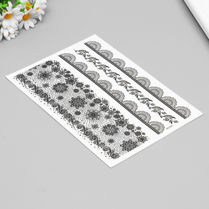 Татуировка на тело чёрная "Ажурные узоры" 25х15 см