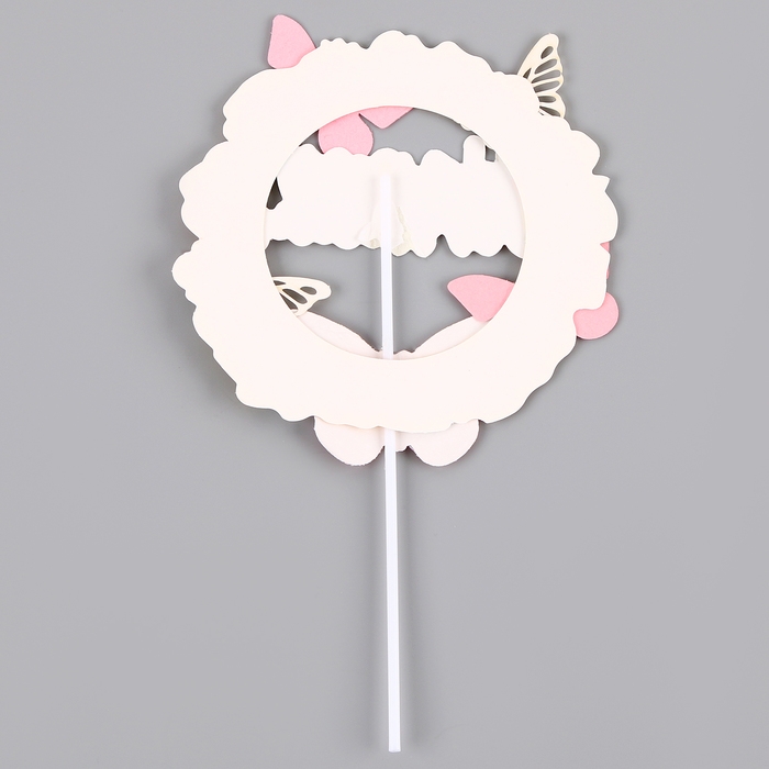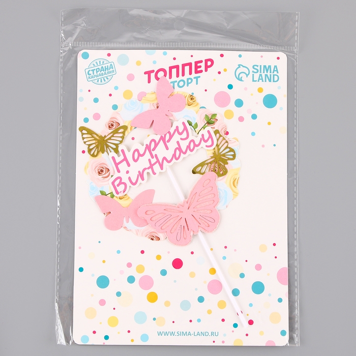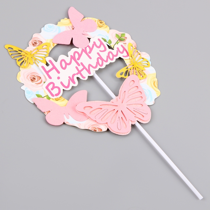 Топпер «С днём рождения» с бабочками, цвет розовый