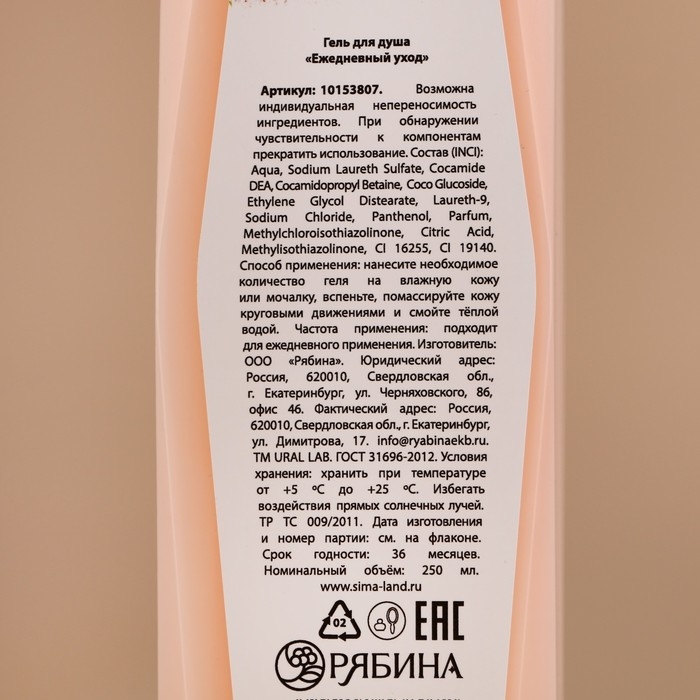 Гель для душа, мягкость кожи, 300 мл, аромат пиона и сандала, CHUVSTVO by URAL LAB