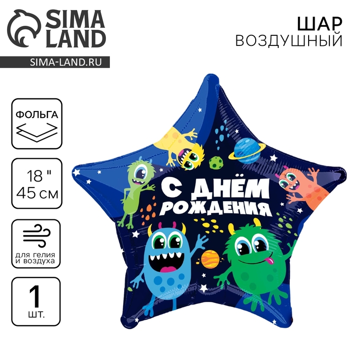 Воздушный шар фольгированный 18" «Монстрики», звезда