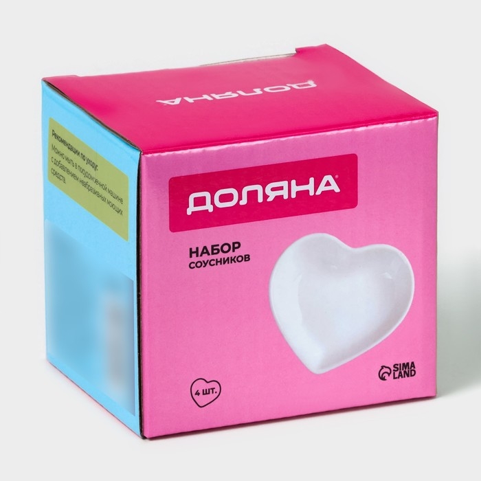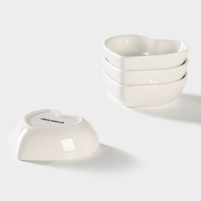 Набор соусников керамических Доляна «Сердце», 12,5×11,5 см, 4 предмета: 50 мл, цвет белый
