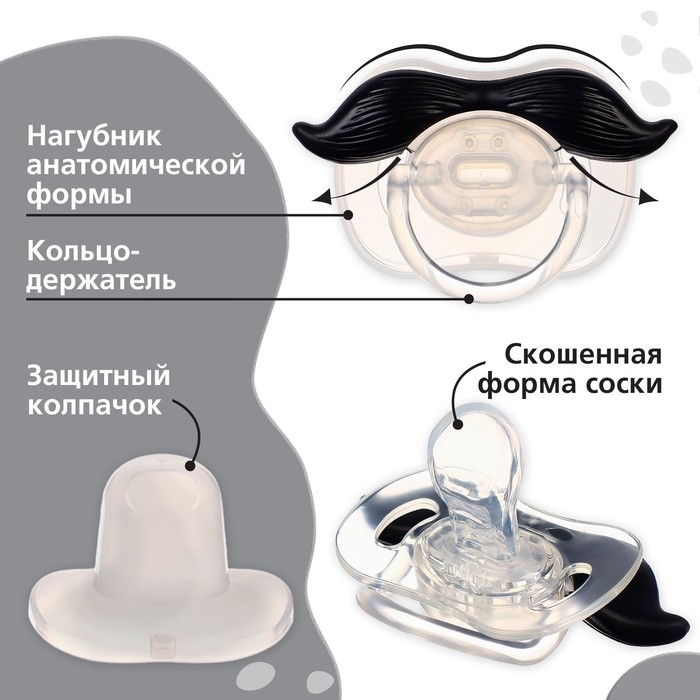 Соска пустышки силиконовая и имеет анатомическую форму диска, специальные вентиляционные отверстия на пустышке улучшают циркуляцию воздуха не раздражают кожу малыша и не оставляют следов и опрелостей. Создана для удовлетворения естественного сосательного рефлекса малышей. Пустышка анатомической формы имеет немного сплюснутый сосок, благодаря чему прилегает к языку.