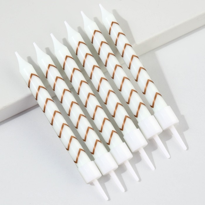 Свечи в торт "Ройс", 6 шт, высокие, 13 см, золотой металлик