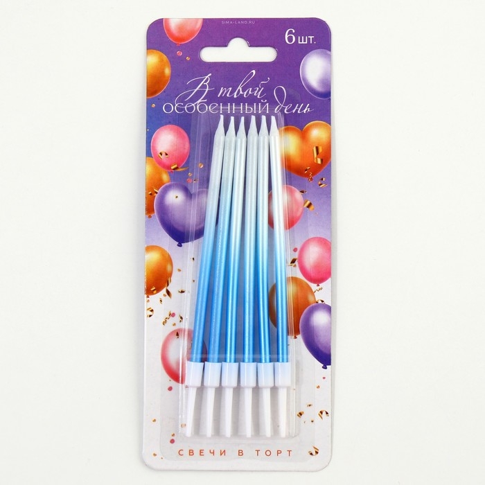 Свечи для торта «В твой особенный день», синие, 6 шт., 13 х 0,4 см