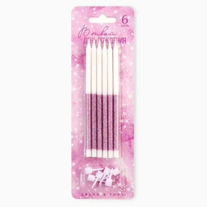 Свечи для торта «В твой день рождения», розовые, 6 шт., 13 х 0,5 см