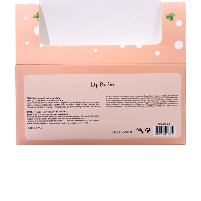 Этот вазелиновый бальзам в карандаше с миксом фруктов - отличный выбор для тех, кто ценит удобство, эффективность и приятные ароматические ощущения. Позвольте вашим губам наслаждаться нежным уходом и свежим фруктовым ароматом в любое время дня.