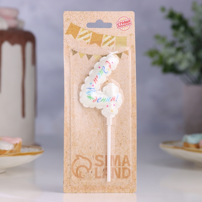Свеча в торт "Воздушная", цифра 4, 5,5 см, белая