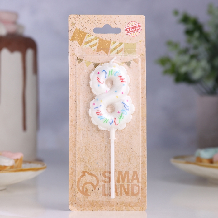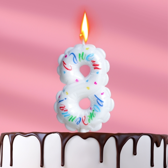 Свеча в торт "Воздушная", цифра 8, 5,5 см, белая