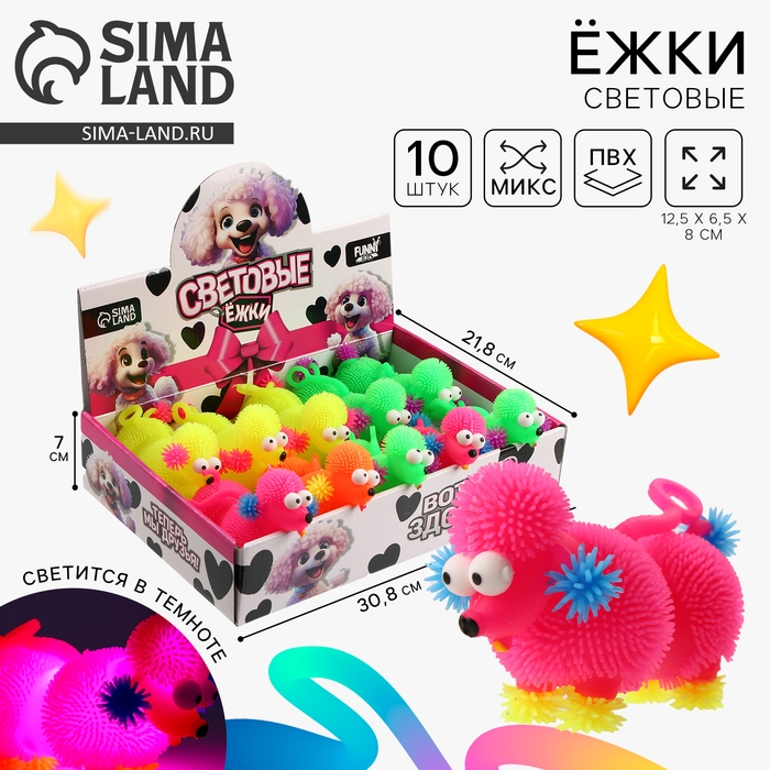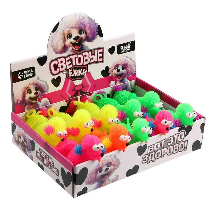 Мяч детский резиновый ёжка световой «Пудель», цвета МИКС , в шоубоксе