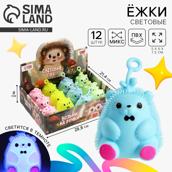 Мяч детский резиновый ёжка световой «Ёжик», цвета МИКС , в шоубоксе