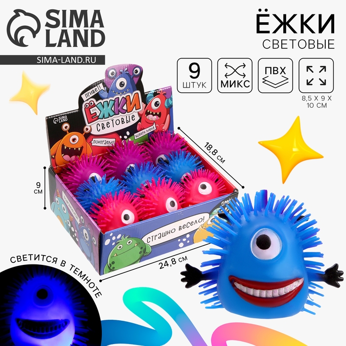 Мяч детский резиновый ёжка световой «Монстрики», цвета МИКС , в шоубоксе