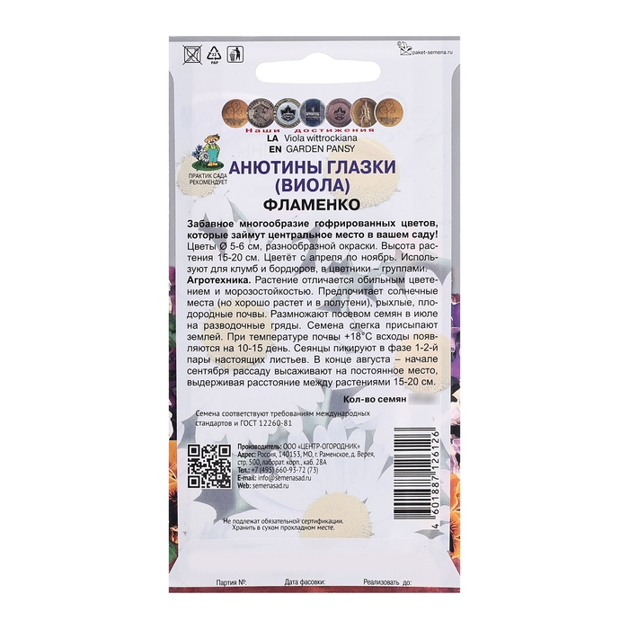 Семена цветов Анютины глазки "Фламенко",10шт.