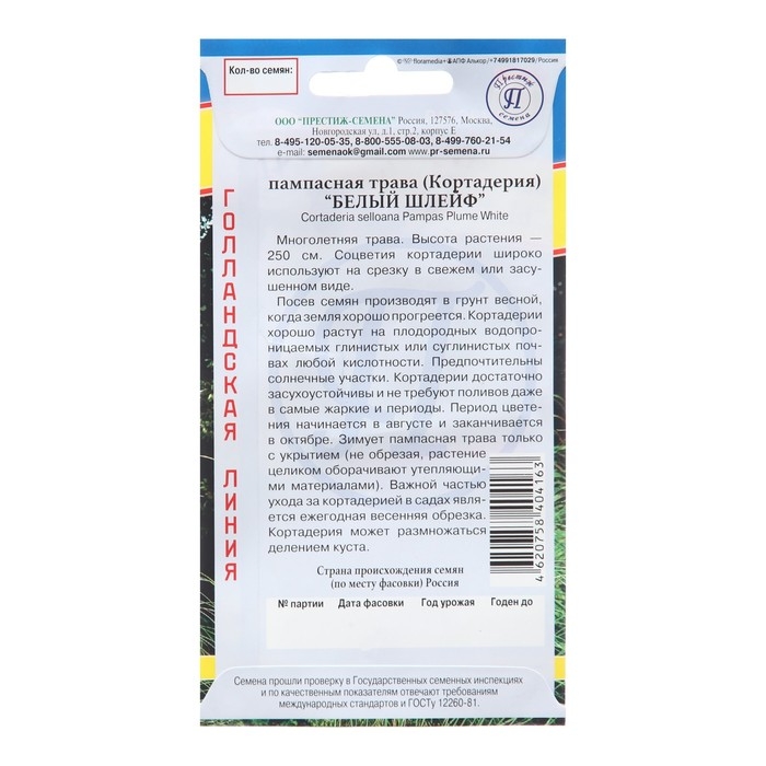 Семена цветов Пампасная трава "Белый шлейф", 0,1 гр