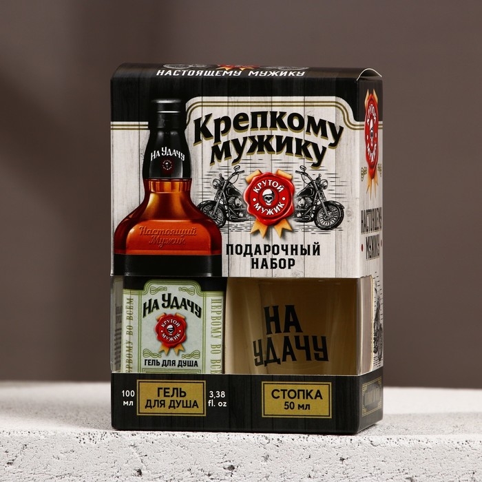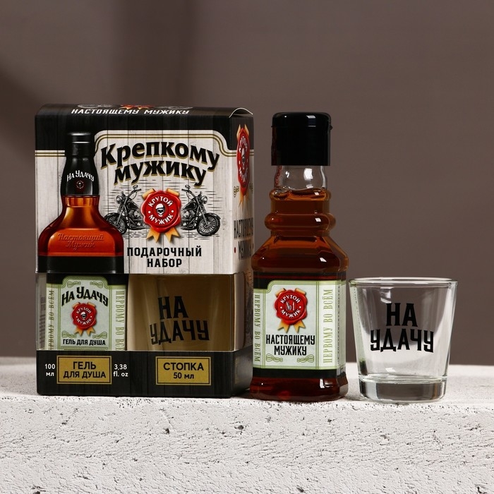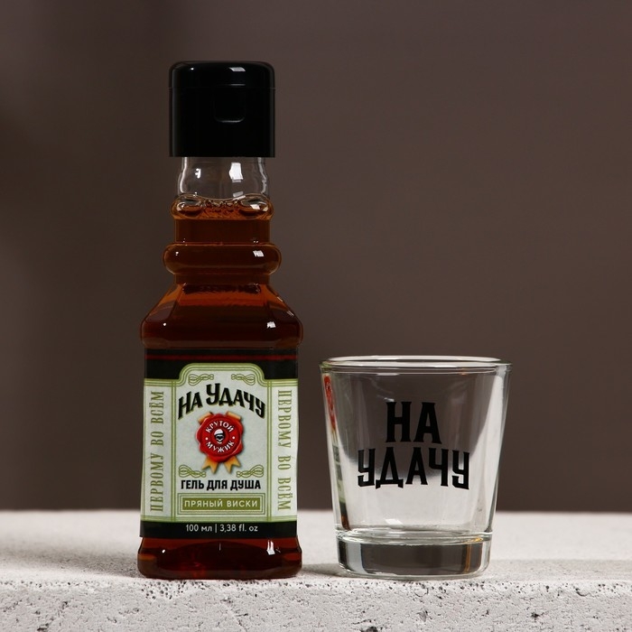 Подарочный набор косметики «На удачу», гель для душа во флаконе виски 100 мл и стопка, Новый Год