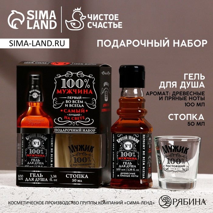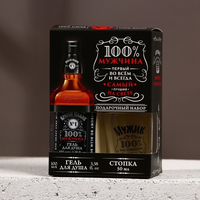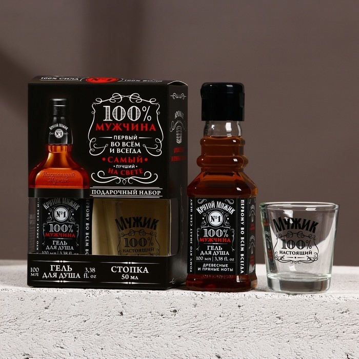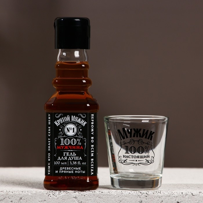 Подарочный набор косметики «Крутой мужик», гель для душа во флаконе виски 100 мл и стопка 50 мл, Новый Год