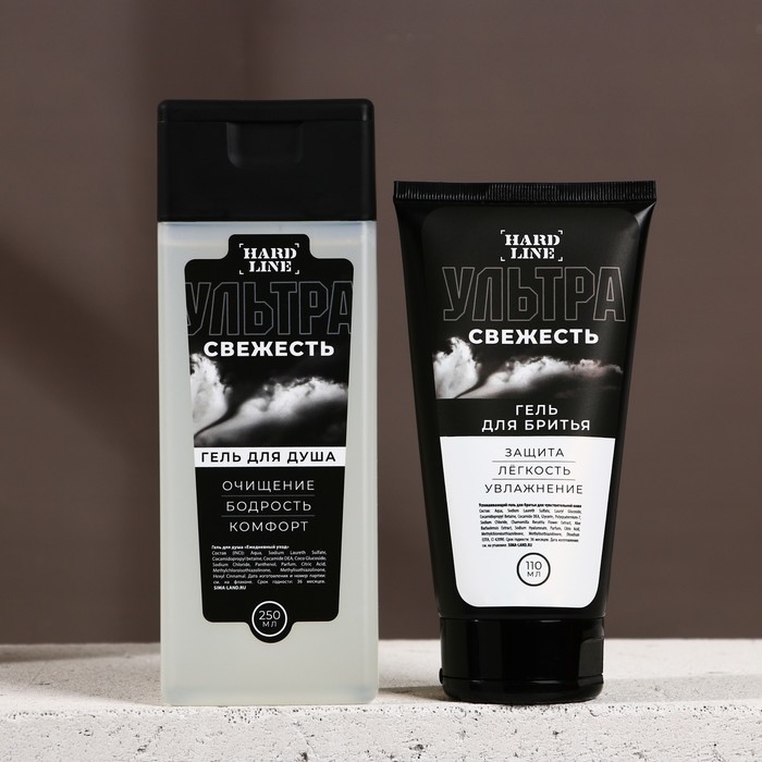 Подарочный набор косметики «Настоящему мужчине», гель для душа 250 мл, гель для бритья 110 мл, бритва, HARD LINE