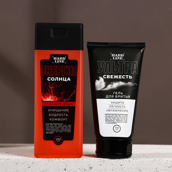 Подарочный набор косметики «Идеальный мужчина», гель для душа 250 мл, гель для бритья 110 мл, бритвенный станок, HARD LINE
