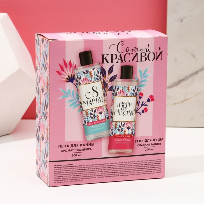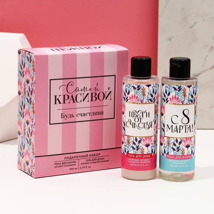 Подарочный набор косметики «Самой красивой», гель для душа 200 мл и пена для ванны 200 мл, ЧИСТОЕ СЧАСТЬЕ