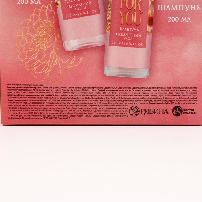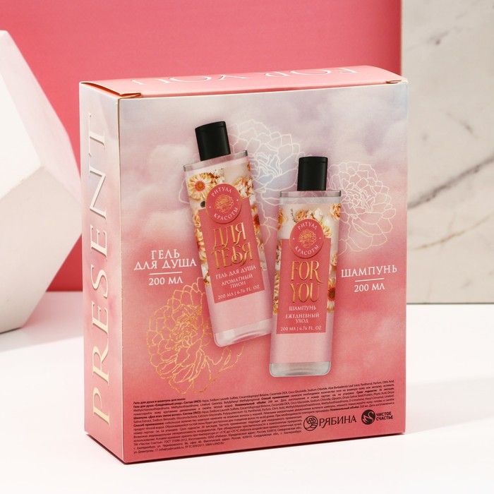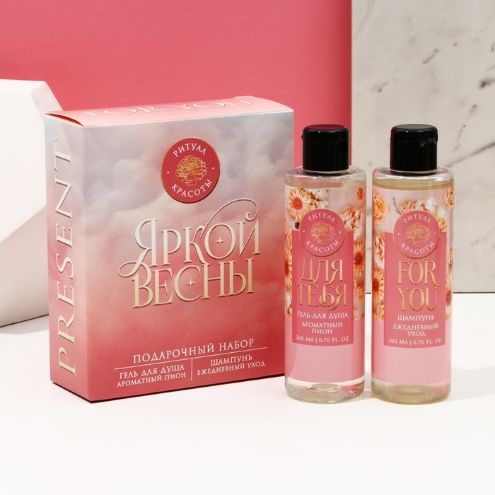 Подарочный набор косметики «Яркой весны!», гель для душа 200 мл и шампунь для волос 200 мл, ЧИСТОЕ СЧАСТЬЕ