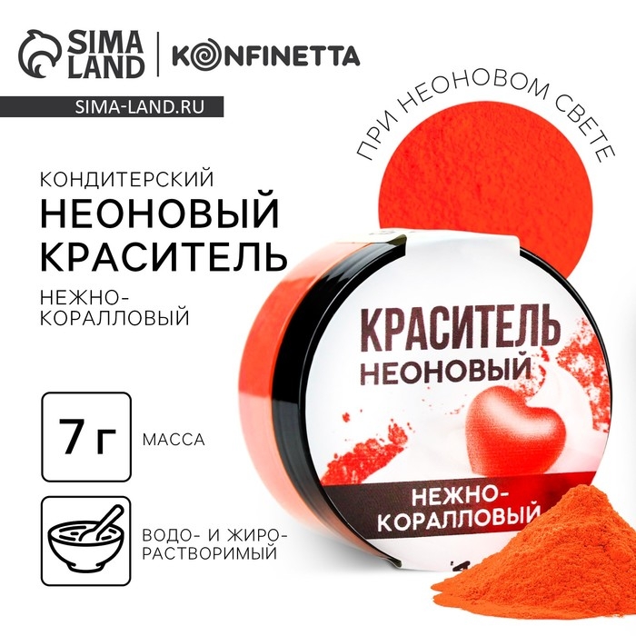 Краситель неоновый KONFINETTA, нежно коралловый, 7 г.