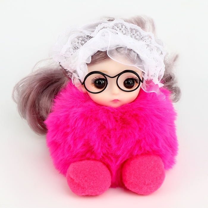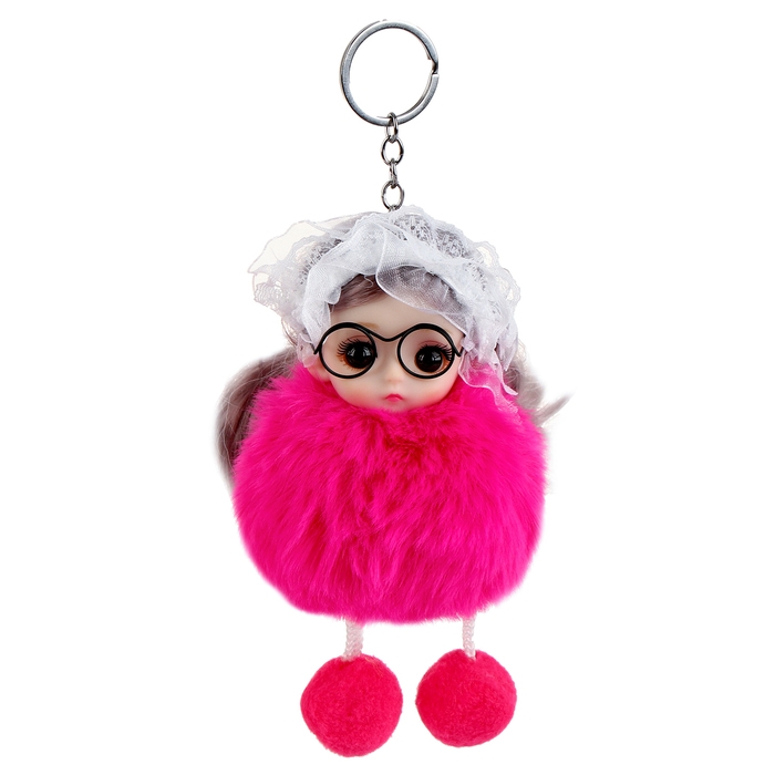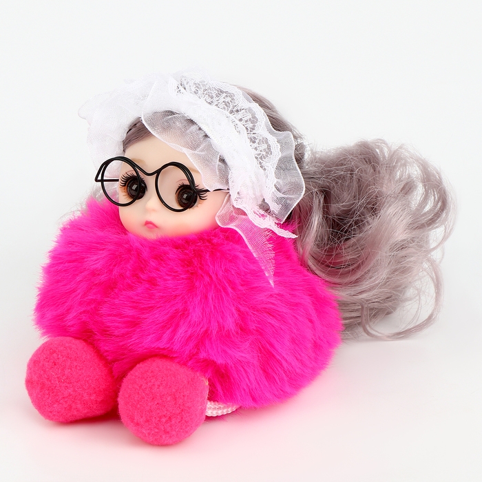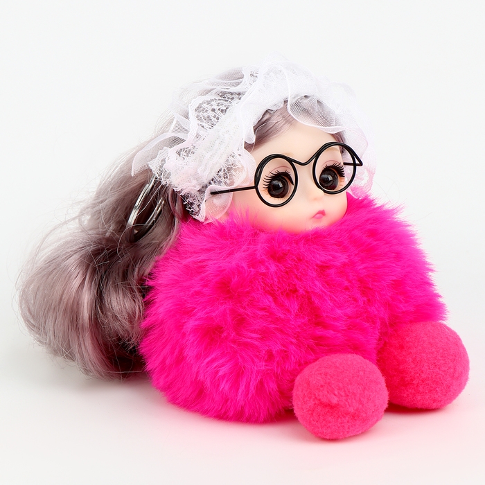 Мягкая игрушка «Куколка модница» на брелоке, 16 см, цвет фуксия