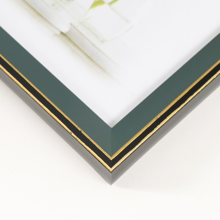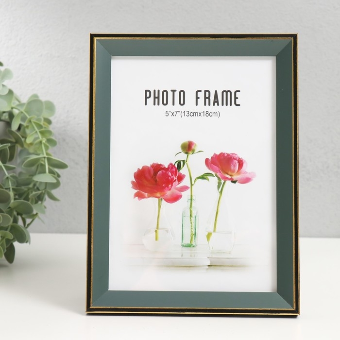 Фоторамка пластик 13х18 см "Зелёный с золотым обрамлением" 15х20 см