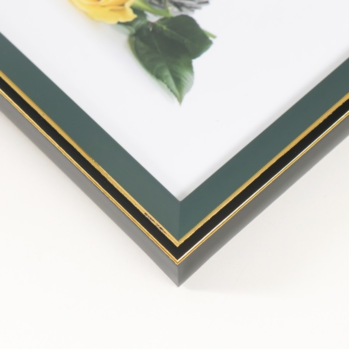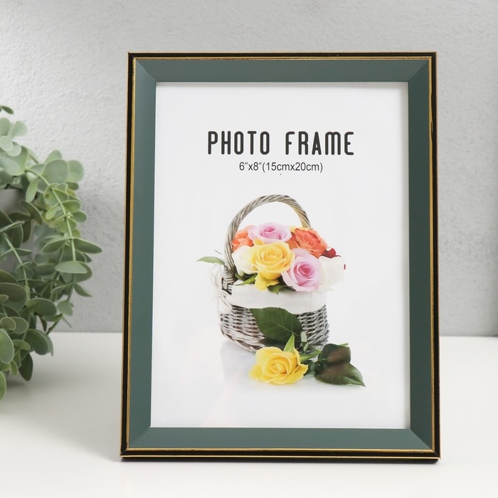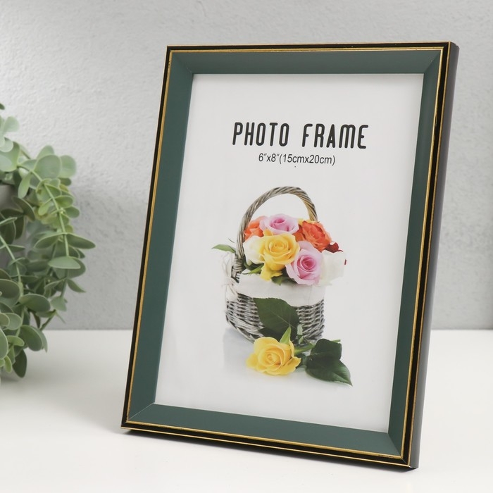 Фоторамка пластик 15х20 см "Зелёный с золотым обрамлением" 17х22 см
