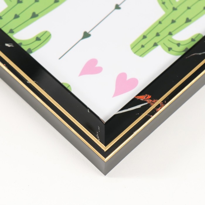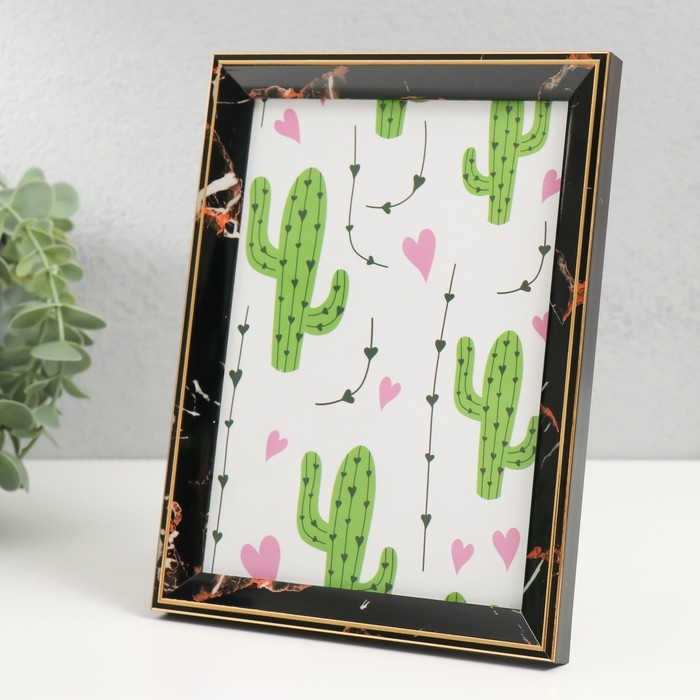Фоторамка пластик 13х18 см "Черный мрамор с золотой рамкой" 15х20 см