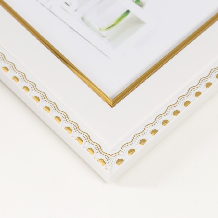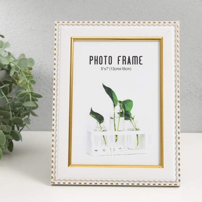 Фоторамка пластик 13х18 см "Золотые волны и точки" белый 16,6х21,6 см