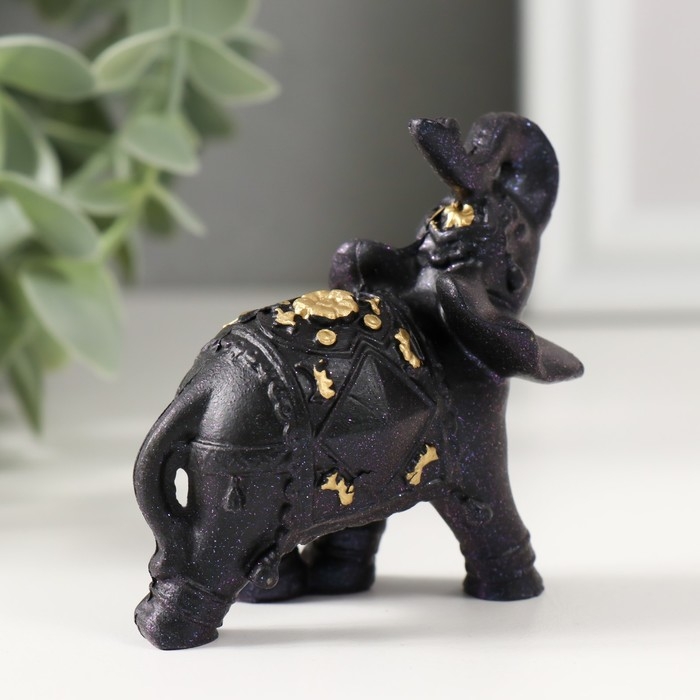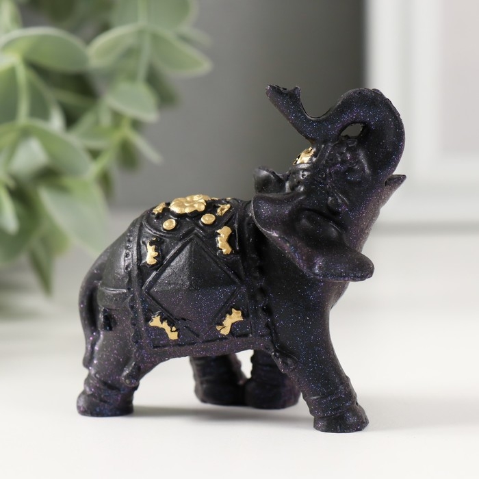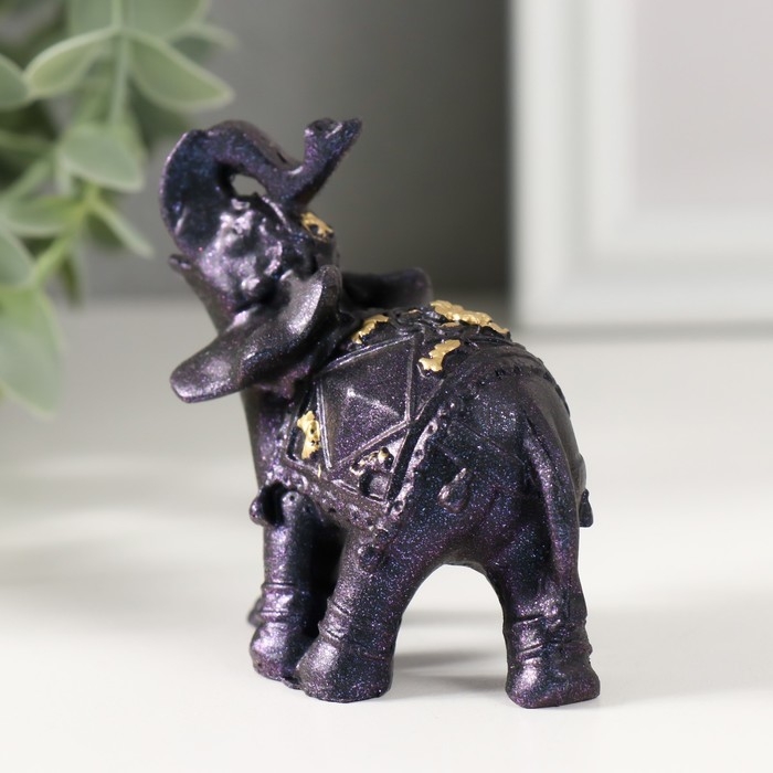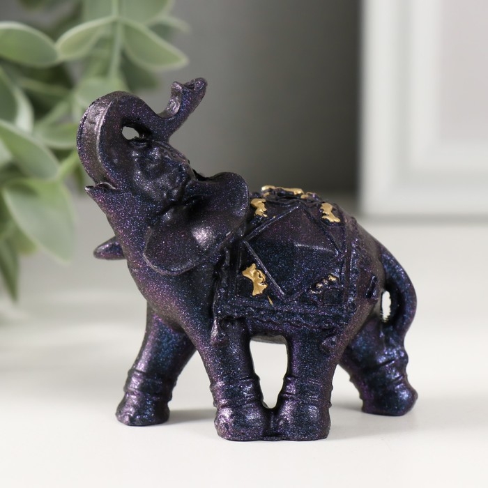 Сувенир полистоун "Сине-фиолетовый слон с попоной и золотом" 6,5х3,5х7 см