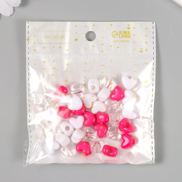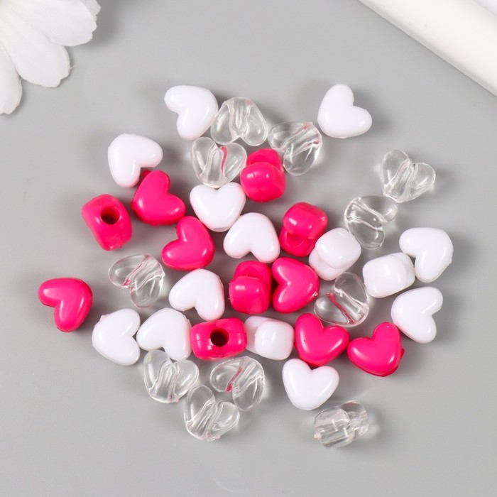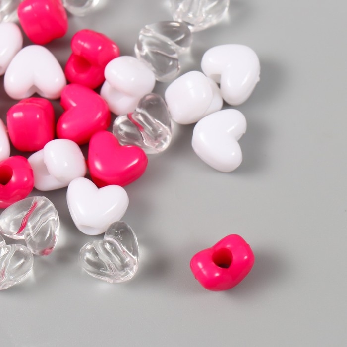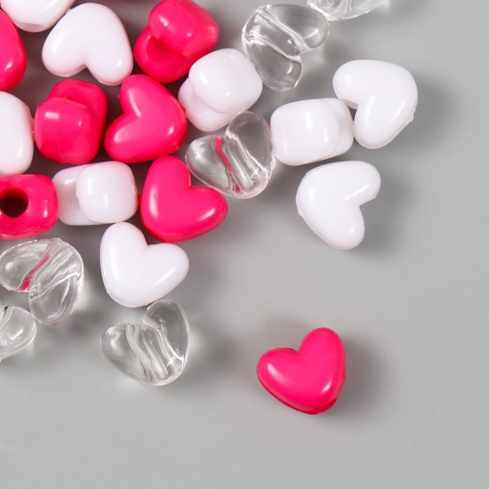 Бусины пластик "Сердце. Ярко-розовый, белый, прозрачный" набор 20 гр 1,2х0,9х0,8 см