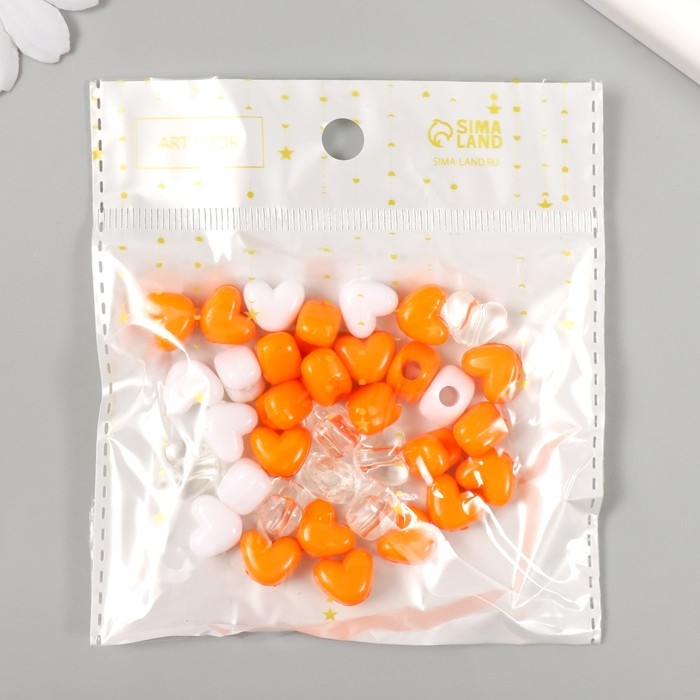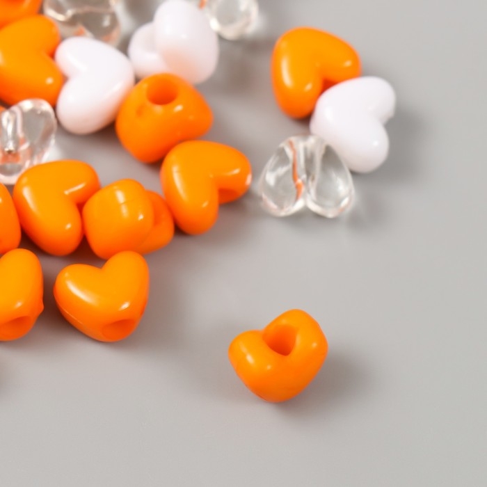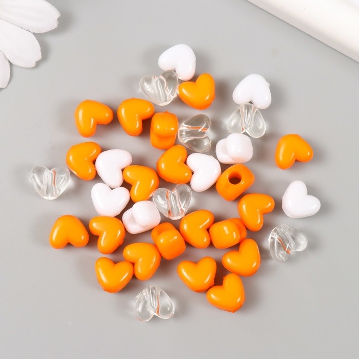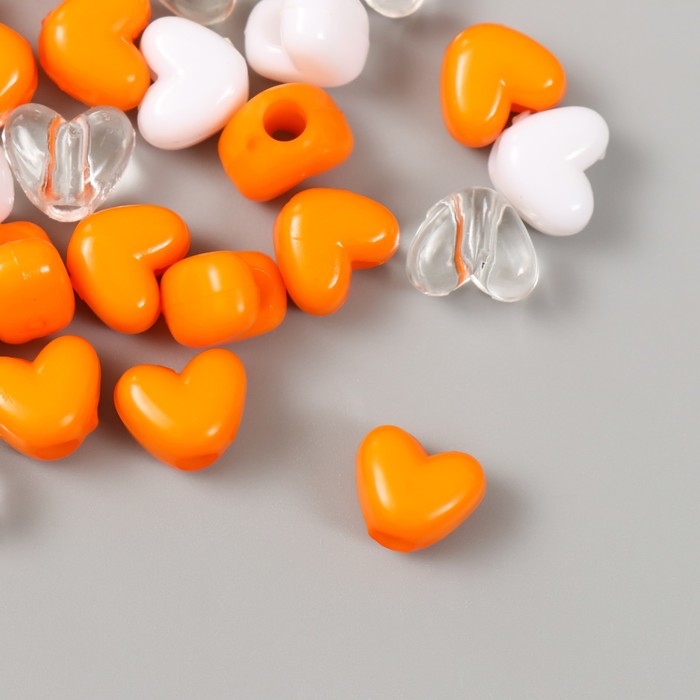 Бусины пластик "Сердце. Оранжевый, белый, прозрачный" набор 20 гр 1,2х0,9х0,8 см