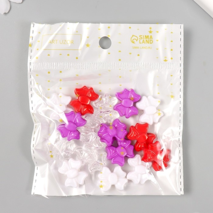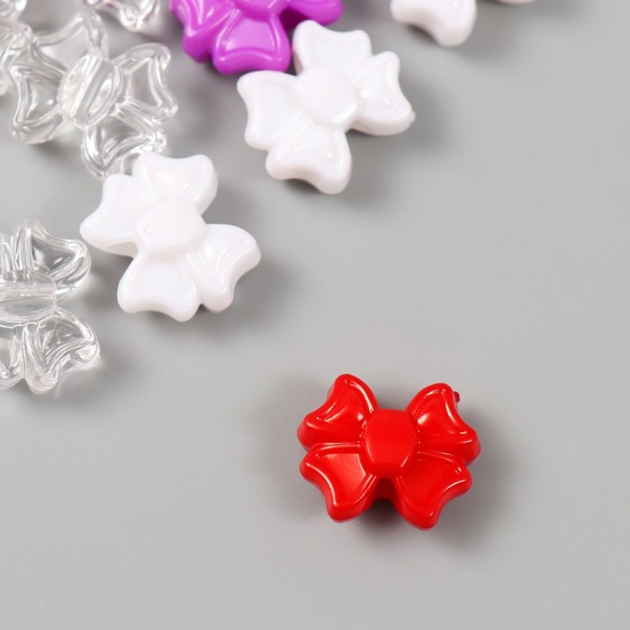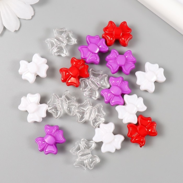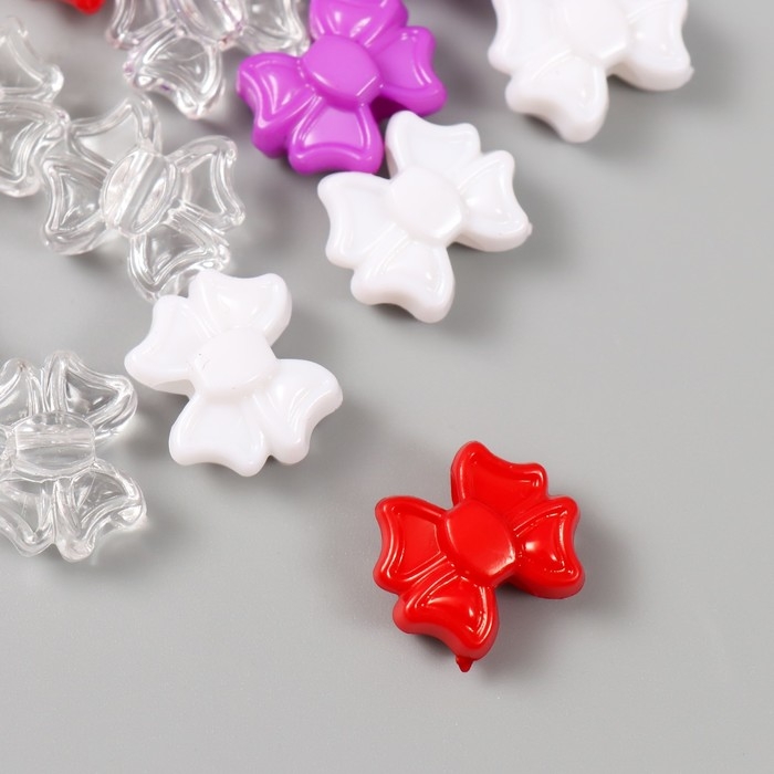 Бусины пластик "Бантики. Красный, фиолет, белый и прозрачный" набор 20 гр 1,9х1,6х0,9 см