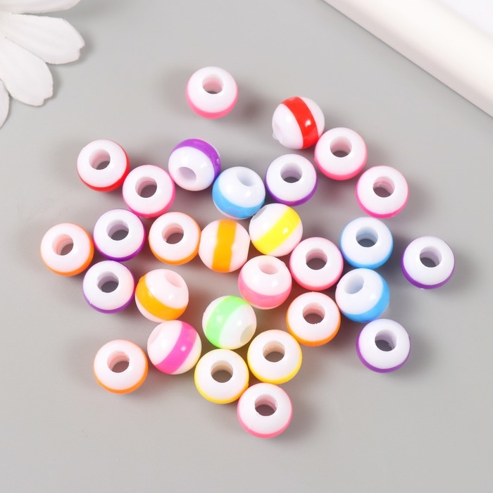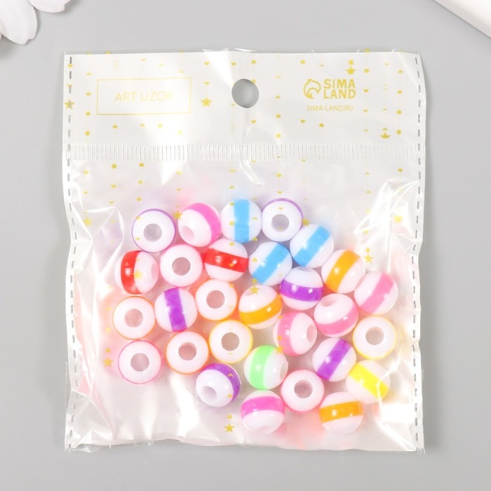 Бусины для творчества пластик "Цветная полоска. Глянец" набор 20 гр 1,2х1,2х1,1 см