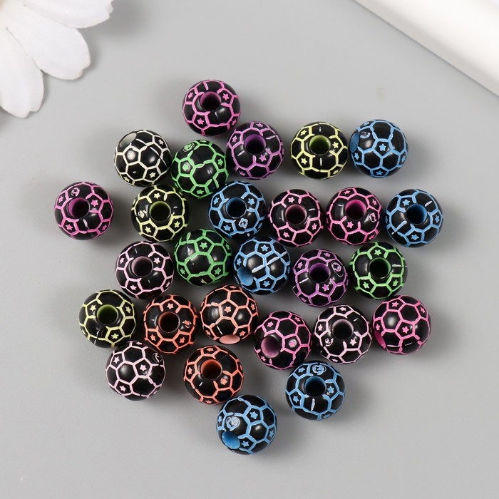 Бусины для творчества пластик "Неон. Футбольный мяч" набор 20 гр 1,1х1,1х1 см