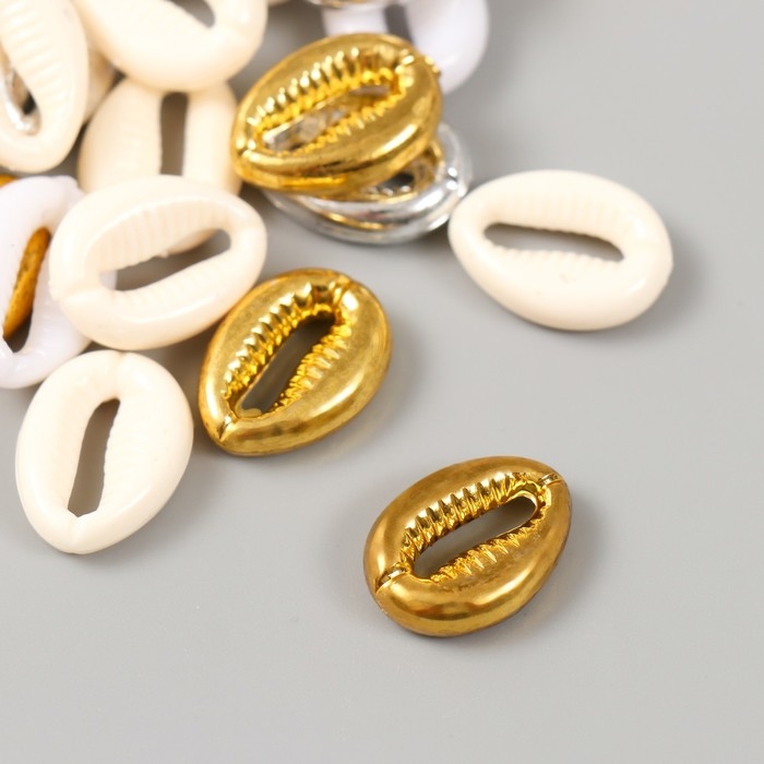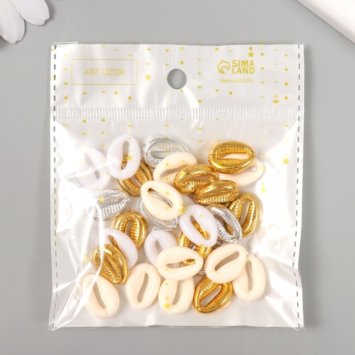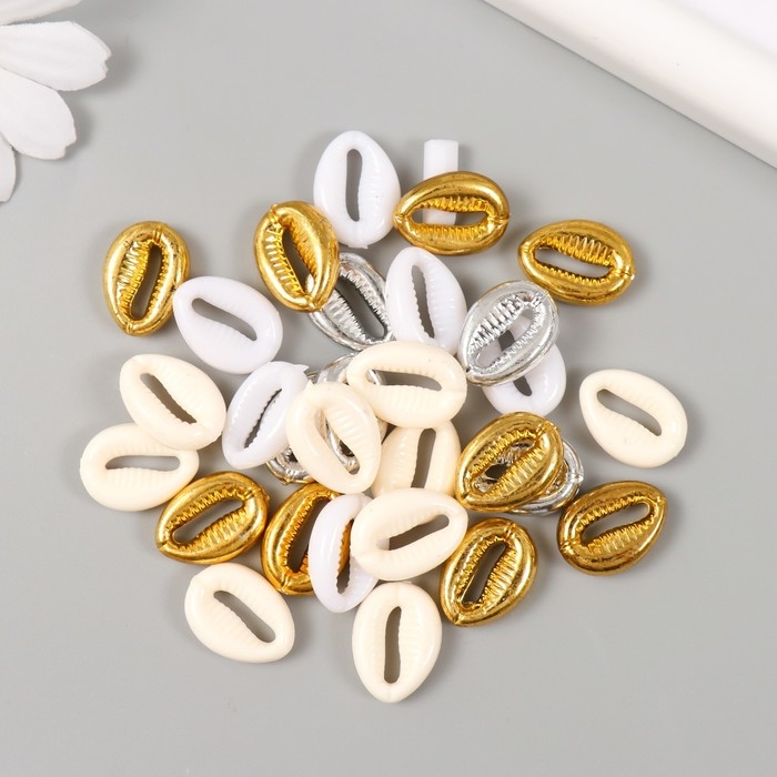 Бусины для творчества пластик "Ракушки. Золото, серебро, белый, беж" н-р 20гр 1,3х1,8х0,5 см 99280