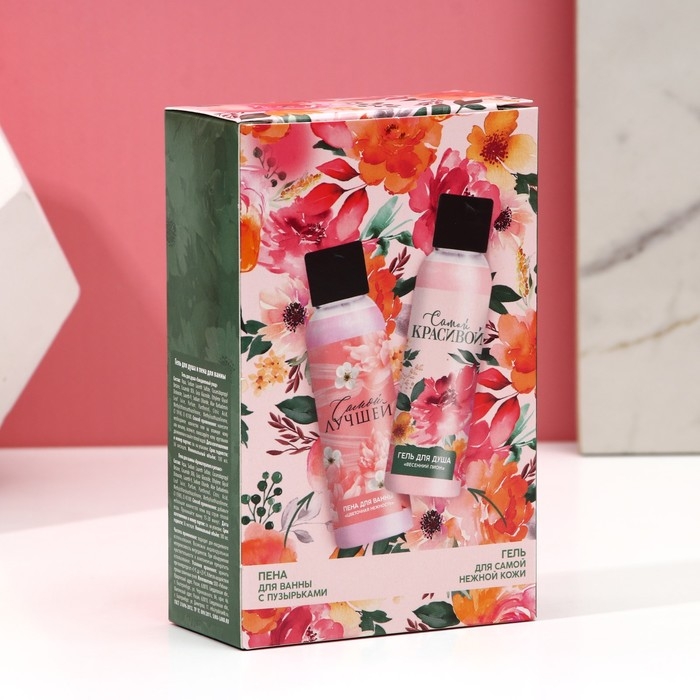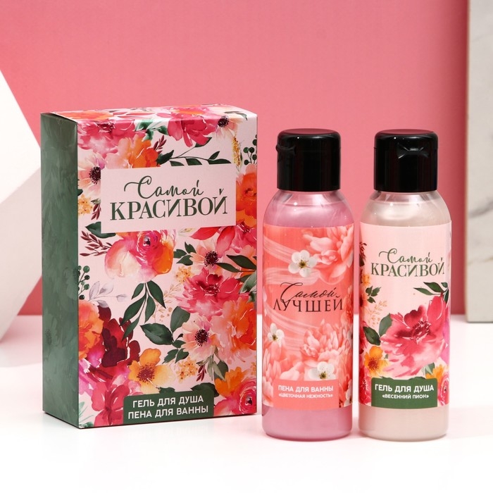 Подарочный набор косметики «Самой красивой», гель для душа 100 мл и пена для ванны 100 мл, ЧИСТОЕ СЧАСТЬЕ