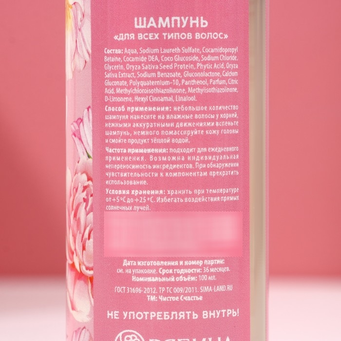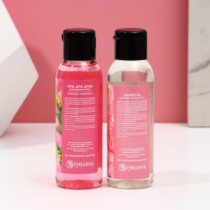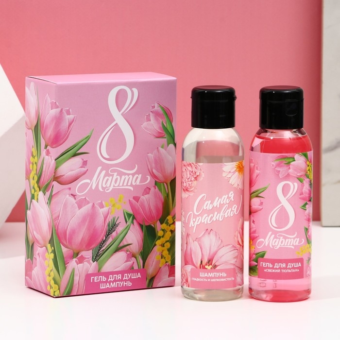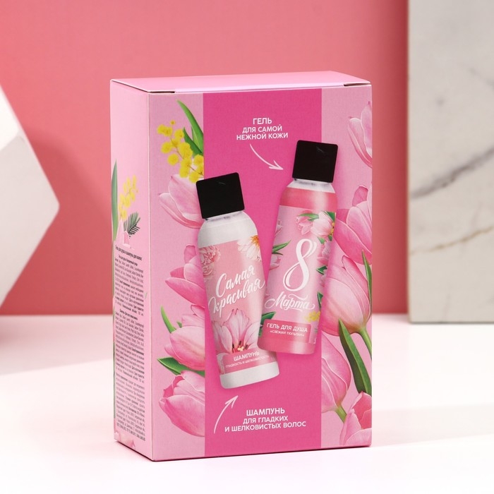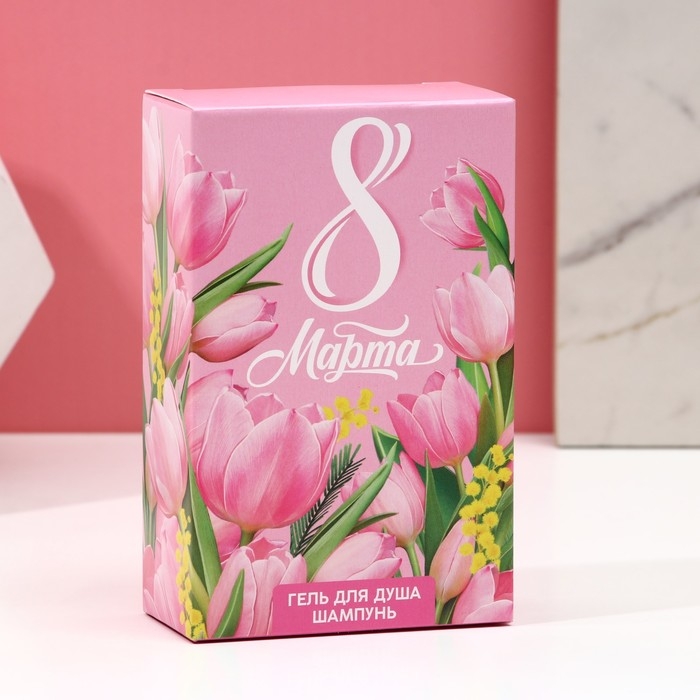 Подарочный набор косметики «С 8 Марта!», гель для душа 100 мл и шампунь для волос 100 мл, ЧИСТОЕ СЧАСТЬЕ