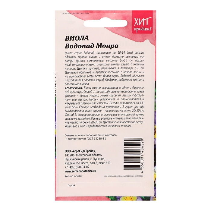 Семена цветов Виола "Водопад Монро" для вазона, 5 шт
