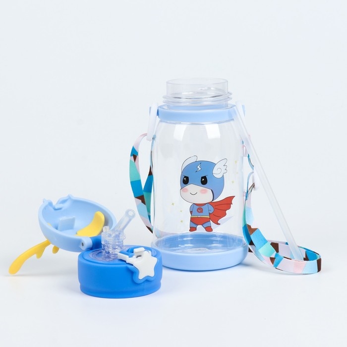 Детская бутылка для воды “Супергерой” - это идеальный аксессуар для маленьких поклонников русалок и единорогов. Эта бутылка объемом 600 мл изготовлена из безопасного и прочного пластика и имеет яркий и красочный дизайн с изображением супергероя. Благодаря удобному ремешку ребенок сможет легко носить бутылку на плече или через голову, освобождая руки для других занятий.