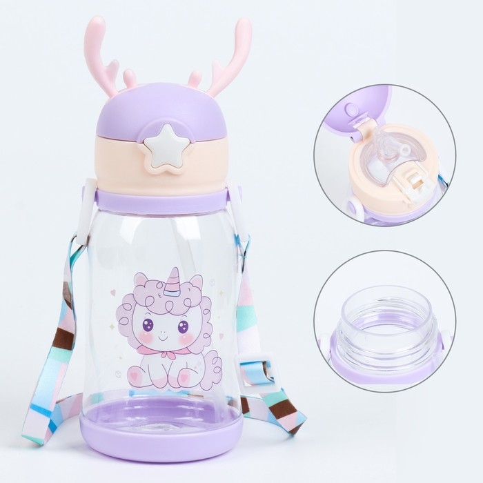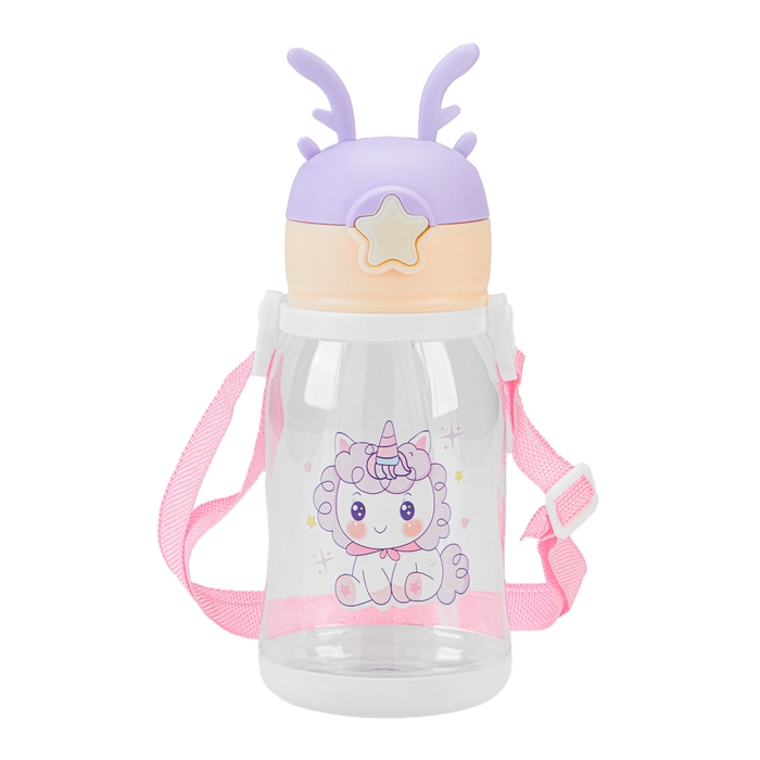 Детская бутылка для воды “Единорог” - это идеальный аксессуар для маленьких поклонников русалок и единорогов. Эта бутылка объемом 600 мл изготовлена из безопасного и прочного пластика и имеет яркий и красочный дизайн с изображением единорога. Благодаря удобному ремешку ребенок сможет легко носить бутылку на плече или через голову, освобождая руки для других занятий.