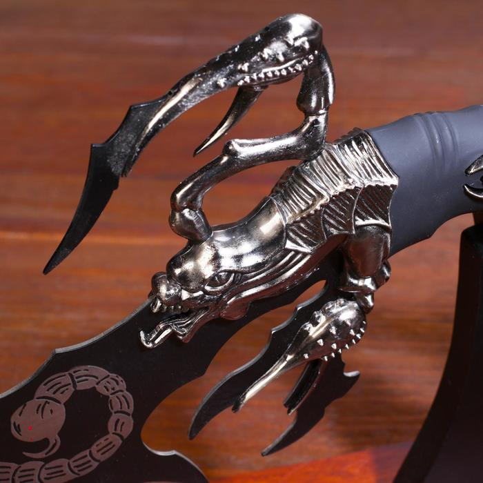 Сувенирный нож на подставке, скорпион на лезвии и рукоятке, 53,5 см