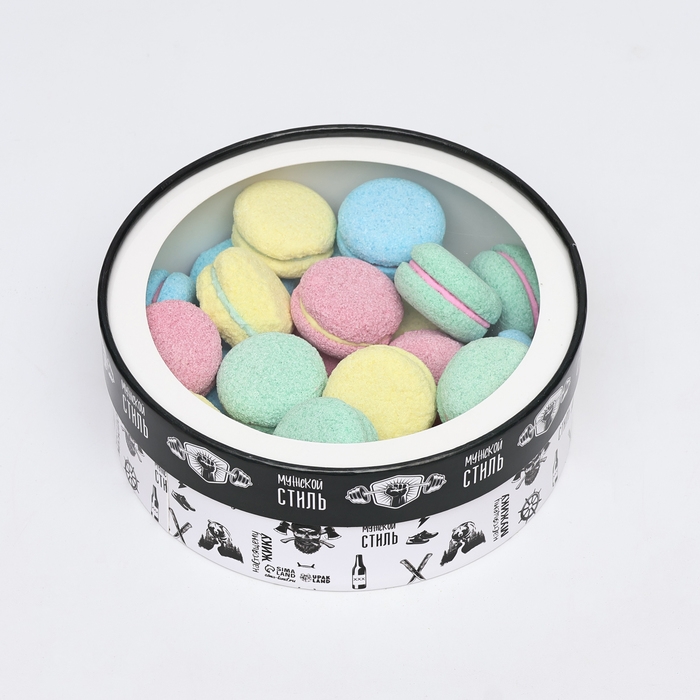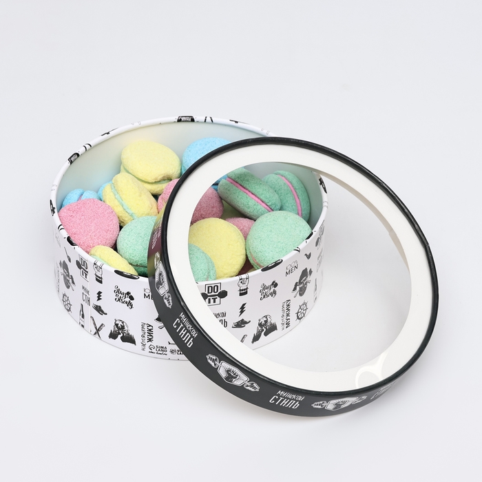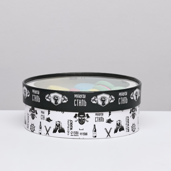 Коробка для макарун тубус с окном "Мужской стиль " 21 х 21 х 7 см