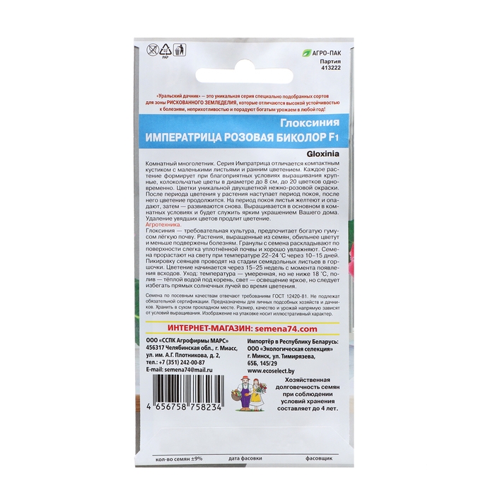 Семена Цветов Глоксиния "Императрица" розовая биколор ,6 шт ,